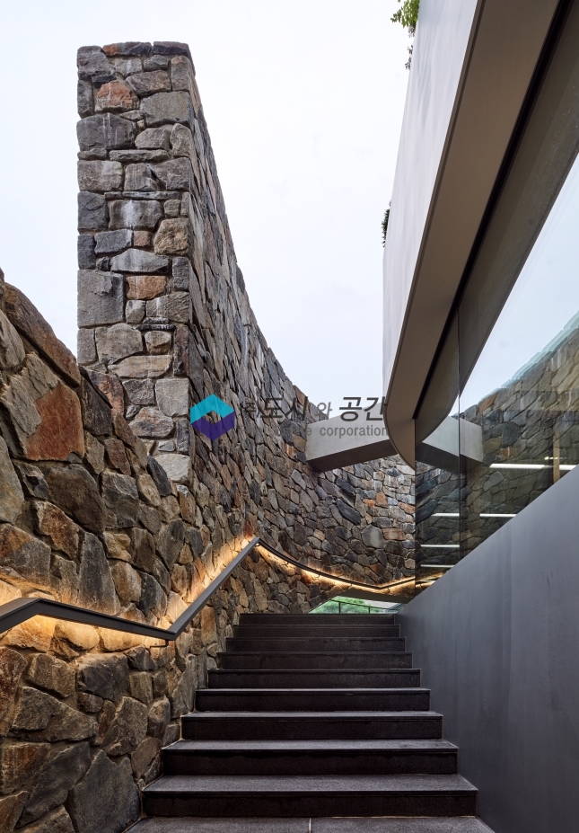 &덕수궁 돌담길을 연상케 하는 외부 계단 돌담 마감